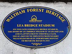 The stadium was originally a speedway venue, but also started hosting football matches in 1930 when Clapton Orient moved to the site, having been forced to leave their Millfields Road ground due to financial problems.[1]