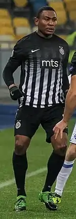In November 2016, Tawamba moved to Serbia and signed a three-year contract with Partizan.[24] He scored his first goal for the club in a 3–0 home league win over Metalac Gornji Milanovac on 8 March 2017.[25] In his first Belgrade derby, Tawamba scored the team's second goal in an eventual 3–1 away win over Red Star Belgrade on 18 April.[26] He eventually finished the season collecting the double.[27]