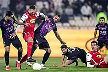 Leandro in action for Persepolis against Havadar defenders in 2023