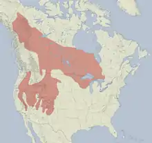 Least chipmunks are found through most of the western United States from northern New Mexico and western North and South Dakota to eastern California, Oregon and Washington, and throughout much of southern and western Canada from Yukon and southeastern British Columbia[7] to central Ontario, and into the Upper Peninsula of Michigan and neighboring parts of Wisconsin and Minnesota. Throughout this range, as many as 21 subspecies have been identified.[4] Less arboreal than other chipmunks,[4] least chipmunks are commonly found in sagebrush habitats and coniferous woodland, and along rivers, but they also occur in alpine meadows, and on the edges of the northern tundra.[1]
