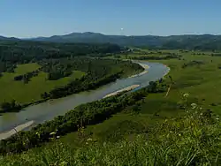 The Lebed (Russian: Лебедь; Altay: Куу, Kuu) is a river in Siberia in eastern Russia, a right tributary of the Biya. Its source is in the Abakan Range (a northern continuation of the Altai Mountains), and it flows through the Altai Republic. It is 175 kilometres (109 mi) long, and has a drainage basin of 4,500 square kilometres (1,700 sq mi).[1]