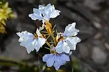 Lechenaultia hortii, commonly known as Hort's leschenaultia,[2] is a species of flowering plant in the family Goodeniaceae and is endemic to a restricted part of the south-west of Western Australia. It is an erect to spreading subshrub or herb with fleshy stems, linear leaves, and blue to pale blue and white flowers.