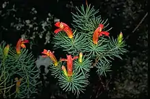 Lechenaultia superba, commonly known as Barrens leschenaultia,[2] is a species of flowering plant in the family Goodeniaceae and is endemic to near-coastal areas of southern Western Australia. It is an erect, spreading shrub with crowded, narrow, fleshy leaves and yellow, red, or yellow and orange flowers.