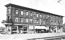 The building was expanded in 1914, allowing for more businesses on the first storey as well as hotel suites on the second storey.[12] A third storey was also added to allow for greater capacity in the hotel.[13] It was at this time that the building was named the Sudbury Hotel, providing accommodations for travelers.[13] The first storey now housed a lobby for the hotel as well as the other businesses, including the addition of a taxi service.[13] The building was purchased in 1930 by Hascal Moses, a Jewish immigrant from Romania, who also owned the Moses Block in downtown Sudbury, a smaller flat-iron building.[14] Moses sold the building upon his retirement in 1949.[14] A fire destroyed the building in the winter of 1952, at which time the current Ledo Hotel was built, matching the footprint of the former Sudbury Hotel.[4]