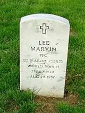 - ↑ "Lee Marvin Is Buried With Military Honors". Los Angeles Times. Associated Press. October 8, 1987. Retrieved August 2, 2018.