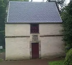 The 1671 dated dovecote at Dumfries House (NS 53951 20350) is the oldest dated building on the estate and is contemporary with Lefnoreis Castle.[10] Another date of 1851 implies a restoration date. The armorial panel above the doorway is of the McDoualls of Freugh who in 1720 married into the Crichton family.[17]