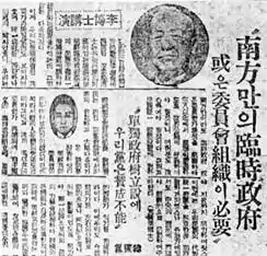 During the period of US military governments after independence, Kim Kyu-sik's and Lyuh's calls for the "Establishment of a democratic state by the coalition of the left and right" received widespread public support.[7]