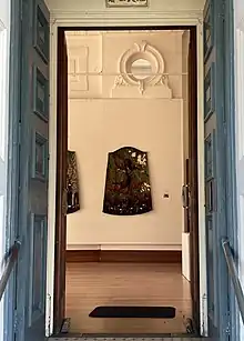 The gallery's national pounamu collection includes work by Paul Bradford and Russell Beck.[24] The gallery was granted $15,000 in 1997 to create a display area for the collection, at that time comprising 19 pieces by 15 leading carvers.[31] The entranceway, named Te Ara Poutini – Pathways of Greenstone, was carved from tōtara over June and July 1998 by Tony Manuel and Turi Gibb.[32]