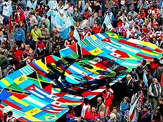 - ↑ Anti-U.S. Protests Flare at Summit by The Washington Post
