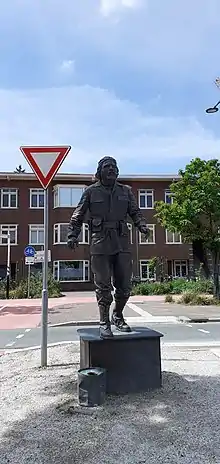 In addition, more radical left wing activists responded to Guevara's apparent indifference to rewards and glory, and concurred with Guevara's sanctioning of violence as a necessity to instill socialist ideals.[13] Even in the United States, the government which Guevara so vigorously denounced, students began to emulate his style of dress, donning military fatigues, berets, and growing their hair and beards to show that they too were opponents of U.S. foreign policy.[14] For instance, the Black Panthers began to style themselves "Che-type" while adopting his trademark black beret, while Arab guerrillas began to name combat operations in his honor.[15] Addressing the wide-ranging flexibility of his legacy, Trisha Ziff, director of the 2008 documentary Chevolution, has remarked that "Che Guevara's significance in modern times is less about the man and his specific history, and more about the ideals of creating a better society."[16] In a similar vein, the Chilean writer Ariel Dorfman has suggested Guevara's enduring appeal might be because "to those who will never follow in his footsteps, submerged as they are in a world of cynicism, self-interest and frantic consumption, nothing could be more vicariously gratifying than Che's disdain for material comfort and everyday desires."[17]