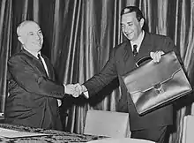 Moro IV Cabinet, with the republican leader Ugo La Malfa as Deputy Prime Minister, started a first dialogue with the PCI, with the aim of beginning a new phase to strengthen the Italian democratic system.[11] However, in 1976 the PSI secretary, Francesco De Martino, withdrew the external support to the government and Moro was forced to resign.[12]