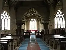 The roofs of the chancel, nave and transepts are all of 1626. In the chancel are five trusses with moulded tie beams, moulded and panelled braces and moulded wall-posts with shaped and moulded pendants. On the nave, six bays similar to the chancel with some repairs; transept roofs are similar each of three bays.