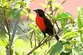It includes five species of largely insectivorous grassland birds. In all species the male at least has a black or brown back and extensively red underparts.