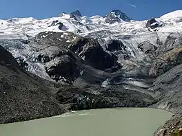 Lej da Vadret is a lake below Roseg Glacier in the Grisons, Switzerland.