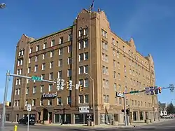 Leland Hotel, also known as the Leland Motor Inn, is a historic hotel building located at Richmond, Wayne County, Indiana. It was built in 1928, and is a seven-story, U-shaped, Mission Revival style reinforced concrete building sheathed in light brown brick dwelling. The building was modernized in the mid-1960s and removed or covered many of the original details. It is the tallest building in Richmond.[2]: 2–3