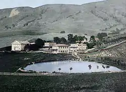 In 1850, Clement Columbet bought a large parcel, and opened the Warm Springs Hotel, a resort for wealthy San Francisco Bay Area residents during the 1850s through 1860s.[6] It was destroyed in the 1868 Hayward earthquake.
