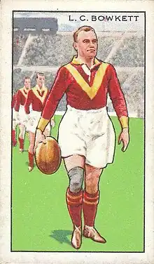 Leonard Charles Bowkett (6 September 1906[3] – February 1976) was an English rugby union, and professional rugby league footballer who played in the 1920s and 1930s, and coached rugby league in the 1930s. He played representative level rugby union (RU) for Warwickshire, and at club level for Coventry R.F.C., and representative level rugby league (RL) for England, and at club level for Huddersfield, Batley (loan), and Keighley, as a fullback, centre, stand-off,[1] and coached at club level for Keighley (A-Team).