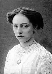 As was usual in working-class families at the time, Lene's childhood was all too brief. According to several sources she left her parents' home as soon as she could.[7] She was only 12 when she took work as a courier for a dolls' clinic, collecting dolls in need of attention and returning them to their homes following repair. This involved a very small girl walking the streets of Leipzig with an implausibly large basket. She was later able to recall the image and joke about it, but the work itself was perfectly serious. After she had been persuaded by her mother to enroll at an academy for Kindergarten work, between 1903 and approximately 1905 she worked as a nanny for a prosperous family. As part of the work, she used to create puppetry games to keep the children amused. It was the "background humour" incorporated in one of these puppetry games that led to her dismissal.[1]