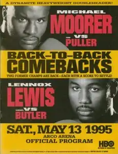 The Lewis–Butler bout was part of a doubleheader boxing event that also included Michael Moorer, who like Lewis, had lost a heavyweight title in his previous match, dropping the WBA and IBF versions of the title to George Foreman the previous year. Initially, Moorer was set to face Tim Puller, but a broken hand forced Puller to pull out of the fight. Instead Moorer faced the then-up-and-coming prospect Melvin Foster.[4] Moorer would defeat Foster by a lopsided 10-round unanimous decision with three scores of 99–91 (nine rounds to one).