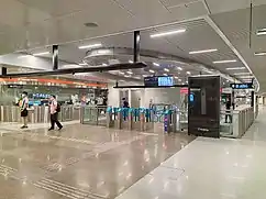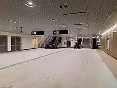 In the early morning of 1 March 2018, a 48-year-old construction worker died after falling from a working platform, 2.5 metres (8.2 ft) above the ground, while working in a tunnel leading to the station.[12] Prior to the incident, four other workers were dismantling components of a tunnel boring machine (TBM) after finishing tunneling works.[12] A component of the TBM, a man-lock chamber, was being lowered using chain blocks when it abruptly swung, striking the platform that the worker was standing on.[12][13][14]