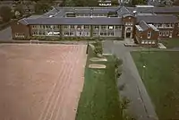 The current red brick Academy building was built in 1960 and extensions have been added to it over the years.[29] [30] The original school building dating from when the Academy was founded in 1886 has since served as Lenzie Primary school.[31][32] More than 110 years after opening the school admitted its first physically disabled student in 1996 which meant the school had to install a lift and ramps to make the whole building accessible.[33][34][35]