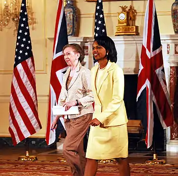 - ↑ "UK has first woman foreign secretary". CNN. 5 May 2006. Archived from the original on 30 June 2009. Retrieved 20 March 2007.