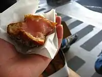 Andrew McCarthy of the National Geographic Traveler wrote that the bakery is an institution that "anchored" its neighborhood.[7] In Hawaii, Leonard's is a "household name".[8] Residents from the other Hawaiian islands often bring home Leonard's malasadas as an omiyage (souvenir gift).[9] The fried doughnut-like item may be unique to Hawaii,[9] but are well known both in the continental United States and internationally.[10][11][12][13][14] The Honolulu bakery is a point of interest on at least one island tour.[15] In 2012, the Honolulu Star-Advertiser reported that the bakery sold over 15,000 malasadas daily, or over 160 million since its opening.[1][lower-alpha 1]