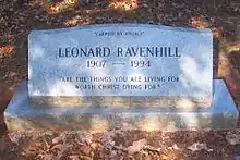 Ravenhill died on 27 November 1994 at the age of 87 and is interred at Garden Valley Cemetery in Garden Valley, Texas, near the grave of Contemporary Christian music artist Keith Green.