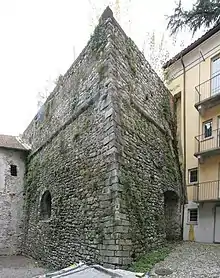 The Rivellino Leonardesco was erected in 1507, on the remains of a tower protecting the Visconteo Castle (Locarno) then part of the Duchy of Milan; the latter was destroyed in one of the various attacks by the Confederates against the village, who attempted the siege following the capture of Bellinzona during the period of south expansion.[3]