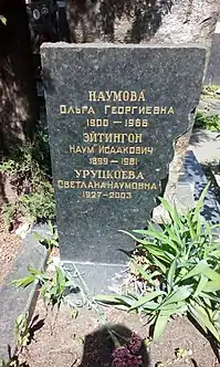 Nahum Eitingon died in 1981 of natural causes. He is buried in the Donskoye Cemetery. In 1992 the Russian Supreme Court annulled the conviction and cleared his name. Eitingon had persistently sought his official rehabilitation, but this was granted only posthumously.[14][15]
