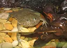 - ↑ Frost DR (2014). "Lepidobatrachus laevis Budgett, 1899". Amphibian Species of the World: an Online Reference. Version 6.0. American Museum of Natural History. Retrieved 31 December 2014.