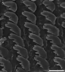![]() Radula: lateral tooth 7 and marginal teeth 1-5. |
