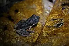Leptobrachium hendricksoni (common names: Thai spadefoot toad, bright yellow-eyed crawl frog, spotted litter frog) is a species of amphibian in the family Megophryidae. It is found in Malay Peninsula (Southern Thailand and Peninsular Malaysia), Sarawak (Borneo), and Sumatra (Indonesia).[2] Its natural habitats are tropical moist lowland forests, rivers, freshwater marshes, and nearby plantations and heavily degraded former forests. It is threatened by habitat loss.[1]