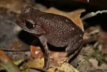 Leptobrachium montanum is a species of frog from the family Megophryidae. It is endemic to Borneo and is, as currently defined, found in Kalimantan (Indonesia), Sabah and Sarawak (Malaysia), and Labi, Belait (Brunei).[2] However, the nominal Leptobrachium montanum is a composed of more than one lineage.[2][3] Available information mostly refers to this composite rather than the "true" Leptobrachium montanum. Common names montane large-eyed litter frog,[4] mountain spadefoot toad, and mountain litter frog have been coined for it.[2]