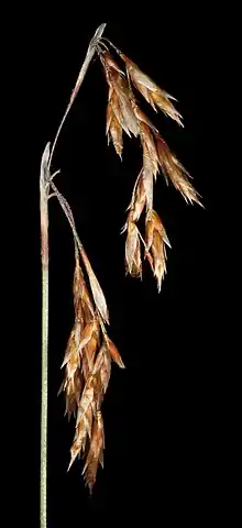4. Barbara G. Briggs (9 April 2014). "Leptocarpus (Restionaceae) enlarged to include Meeboldina and Stenotalis, with new Western Australian species and subgenera". Telopea. 16: 22. doi:10.7751/TELOPEA20147400. ISSN 0312-9764. Wikidata Q54554242.