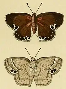 - ↑ Woodhall, Steve (2005). Field Guide to Butterflies of South Africa. Cape Town, South Africa: Struik. ISBN 978-1-86872-724-7.