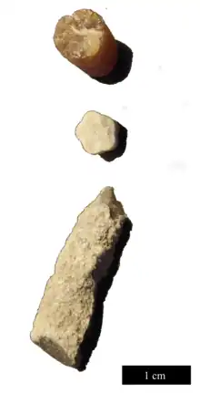 Since the early 20th century overburden materials from the nearby limestone quarry Limhamn were deposited. The material consists mostly from siltstone and flint, which contains fossils. Typical fossils are belemnites, crinoids and several kinds of flint nodules. According to the SGU (Geological Survey of Sweden) is the age of the paleozoic rocks 65.5–61.1 Ma.