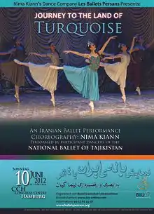 Les Ballets Persans (Persian: سازمان باله ایران) is the successor company and the recreation of the former Iranian National Ballet Company (Persian: سازمان باله ملی ایران). Based in Sweden as a non-profit and non-governmental organization, Les Ballets Persans is an internationally touring dance ensemble founded by Nima Kiann, the Iranian born Swedish dancer, ballet master, choreographer and dance scholar.[1][2] Les Ballets Persans is also known as The New Iranian National Ballet and has been regarded as the most extensive artistic Iranian project ever realized in exile.[3][4][5]