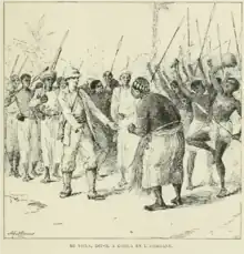 Les Belges dans l'Afrique Centrale. Voyages, aventures et découvertes d'après les documents et journaux d'explorateurs is a travel account composed of three volumes about the early years of the colonization of the Congo basin by Léopold II,[1] which was published several times as both books and instalments between 1884 and 1893. The first volume was written by Adolphe Burdo (1849-1891) and subtitled De Zanzibar au Lac Tanganika. The second and third were written by Charles de Martrin-Donos (1857-1904) and subtitled Le Congo et ses affluents.[1] The volumes were written to "popularize and glorify the civilizing African enterprise, and the Belgians who took part in it".[2]