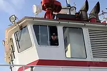 Described as the "dreadnought of Seattle's fireboat fleet," Leschi is one of three fireboats currently operated by the Seattle Fire Department (SFD), the others being Chief Seattle and Marine One.[2] The 108-foot (33 m) Leschi is powered by twin diesel engines rated at 1,550 horsepower (1,160 kW), turning 72-inch (1,800 mm) four-blade propellers, which give the ship a flank speed of 14 knots (26 km/h; 16 mph).[2] Two additional engines, rated at 1,440 horsepower (1,070 kW), power the ship's four water pumps.[2] Unlike its predecessor, Alki, Leschi has touchscreen consoles for bridge command controls instead of manual "knobs and levers".[2] By displacement and pump capacity, it is the largest of ten municipal-owned fireboats that support the U.S. Coast Guard's regional marine firefighting plan for Puget Sound.[14]