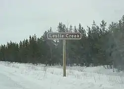 ![]() Road sign for Leslie Creek | |