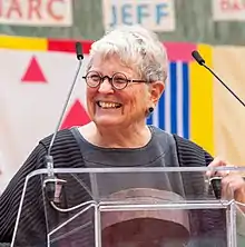 Leslie Ewing (born 1949)[1] is an American cartoonist, activist, and breast cancer survivor. Her comics highlight feminist and lesbian themes and her cartoons have been featured in prominent queer comics, including Gay Comix, Strip AIDS, and Wimmen's Comix. Ewing was the executive director for the Pacific Center for Human Growth from 2008 to 2019.