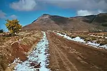 The Lesotho Highlands are formed by the Drakensberg[1] and Maloti mountain ranges in the east and central parts of the country of Lesotho. Foothills form a divide between the lowlands and the highlands.[2] Snow is common in the highlands in the winter.