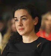 Early March 2014 she became a candidate for Mayor of Kyiv in the 2014 Kyiv local election (including Mayoral elections) set for 25 May 2014.[9][10] Orobets withdrew herself from Batkivshchyna on 31 March 2014 to be a candidate for Mayor with a "non-party status".[4][11] But during these elections she headed the New Life party list.[12] In the mayoral elections she finished second (after Vitali Klitschko who won with almost 57% of the votes) with 8.46%.[13] She was elected into the Kyiv City Council since her party won 3 seats.[14][15] But Orobets decided not to become a deputy in the Kyiv City Council.[16] Then Orobets created the new party Mighty Ukraine that was registered at the Ukrainian Ministry of Justice on 27 July 2014.[3]