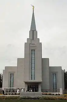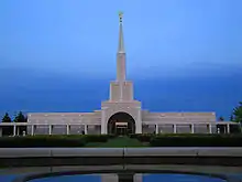 The Alberta Stake was divided in two in 1903. The Alberta Stake remained headquartered in Cardston and the new Taylor Stake—named in honour of John W. Taylor—was headquartered in Raymond. By 1910, there were about 10,000 Latter-day Saints in southern Alberta and in 1913 the church began construction of a temple in Cardston.[11] In 1924, church president Heber J. Grant dedicated the Cardston Alberta Temple, the church's first outside of the United States.[12] A stake was organized in Lethbridge in 1921.