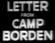 Letter from Camp Borden is a 17-minute 1941 Canadian documentary film, made by the National Film Board of Canada (NFB) as part of the wartime Canada Carries On series.[1] The film was directed by Raymond Spottiswoode and produced by Stuart Legg.[2] Letter from Camp Borden chronicles the experiences in 1941 of a number of soldiers training at the Canadian Army's Camp Borden during wartime.[3]