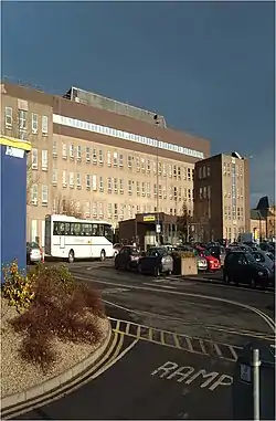 The hospital has its origins in the Letterkenny Union Workhouse and Infirmary which was designed by George Wilkinson and opened in Kilmacrennan Road in 1844.[16] This developed into the Letterkenny District Hospital.[16] Letterkenny General Hospital was built on the same site and was opened by Seán MacEntee, the Tánaiste, in July 1961.[17] A new multi-storey hospital block was built in 1981.[18] Most of the facilities are housed in this building but some, such as the dental, ophthalmic and some mental health facilities, are housed across the road in St Conal's Hospital.[19]