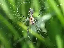 - 1 2 Eberhard, William G. (1990). "Early Stages of Orb Construction by Philoponella Vicina, Leucauge Mariana, and Nephila Clavipes (Araneae, Uloboridae and Tetragnathidae), and Their Phylogenetic Implications". The Journal of Arachnology. 18 (2): 205–234. ISSN 0161-8202. JSTOR 3705838.