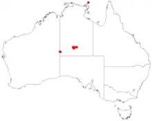 Mount Sonder beard-heath grows on rocky ranges, usually at higher altitudes in the Central and MacDonnell Ranges in the south of the Northern Territory.[2]