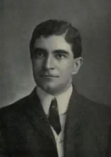 Lewis H. Machen was born on July 10, 1871, near Centreville, Fairfax County, Virginia, to Georgie (née Chichester) and James P. Machen.[1] Machen was named after his grandfather Lewis H. Machen, a clerk of the U.S. Senate and rescuer of records during the burning of Washington, D.C. in 1814. His uncle was Arthur W. Machen, a lawyer in Baltimore.[2] He studied at local schools, Orange Academy, the Locust Dale Academy in Madison County and the Episcopal High School near Alexandria. He entered the University of Virginia in 1891 and studied there two years, one year studying law. He received orator's and debater's medal from the Jefferson Society at the University of Virginia. He was assistant editor of the Corks and Curls publication and editor-in-chief of College Topics and the University Magazine at the University of Virginia. He served as president of the Democratic Club at the school in 1892.[1]